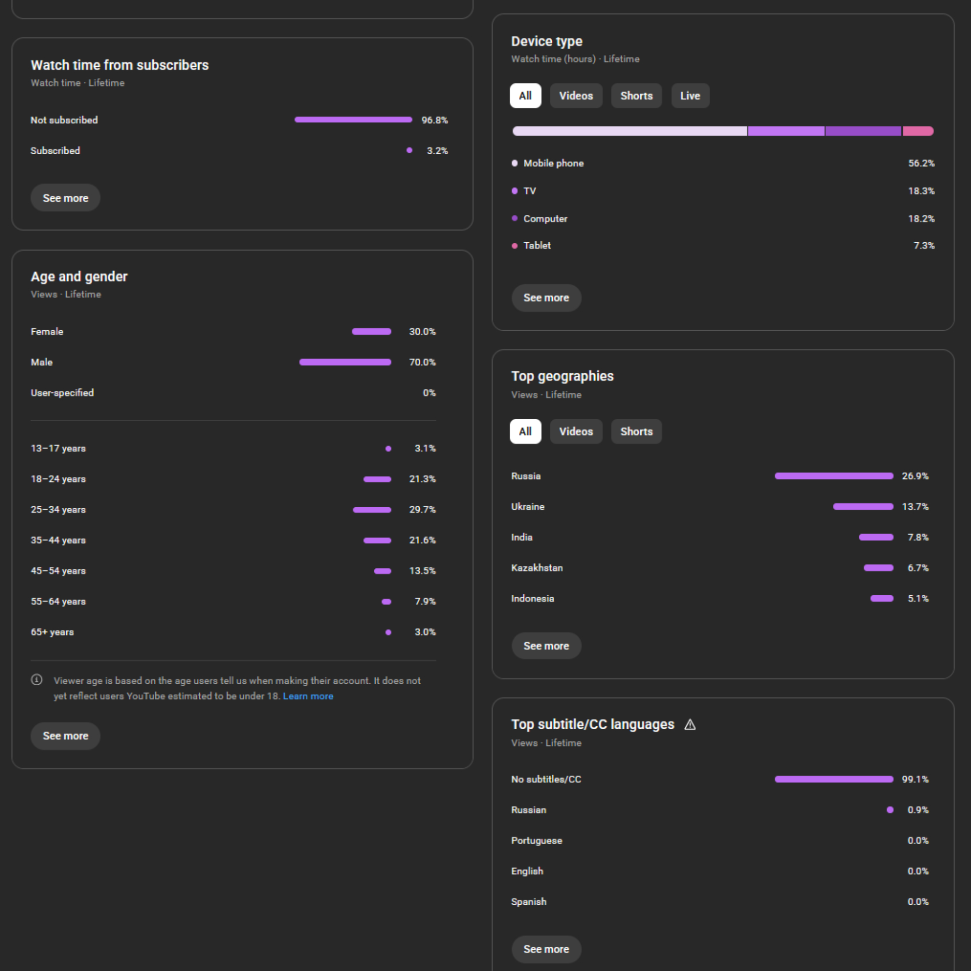 It currently has 12,042 subscribers, stable lifetime analytics, and a library of content that has generated more than 2,175,000 lifetime views.