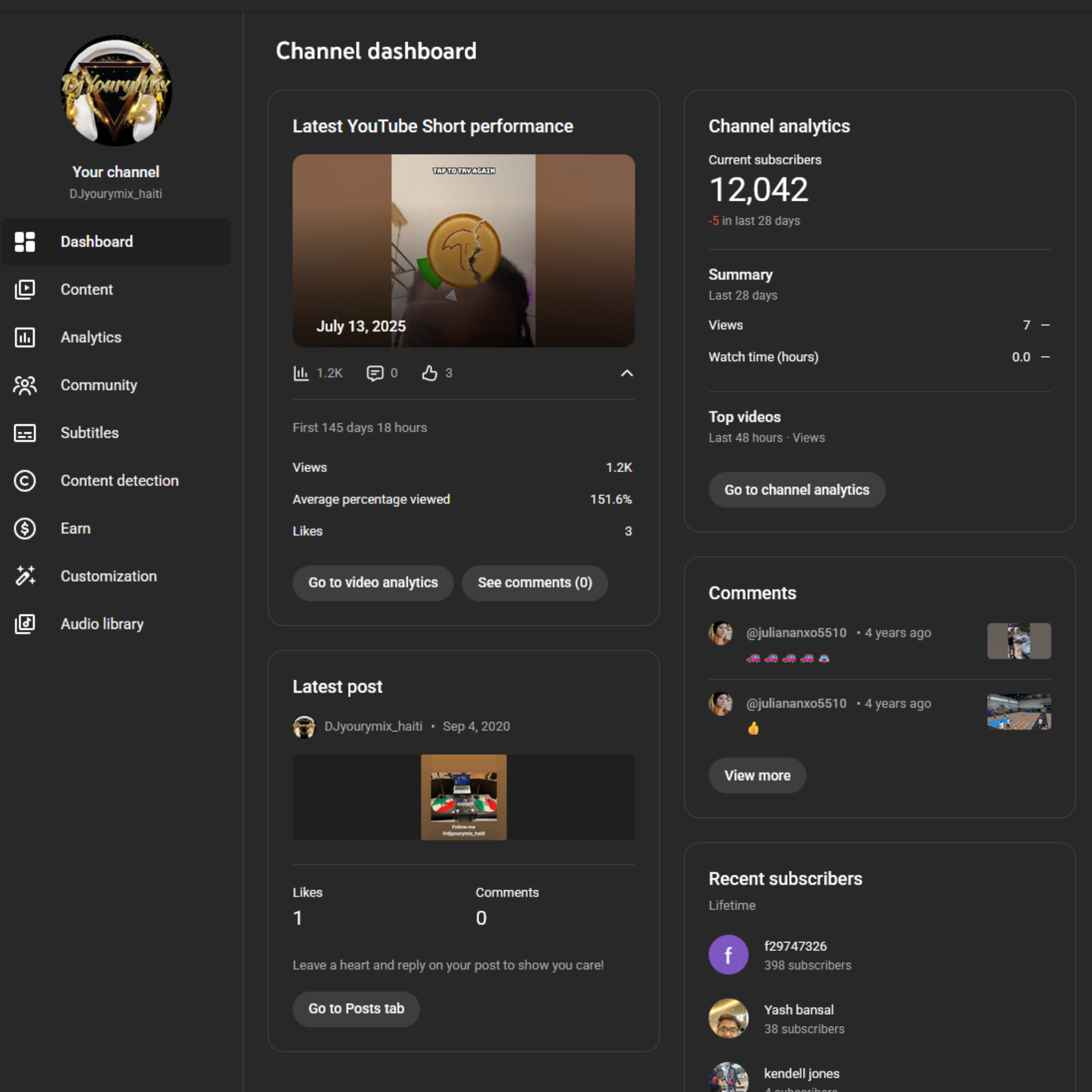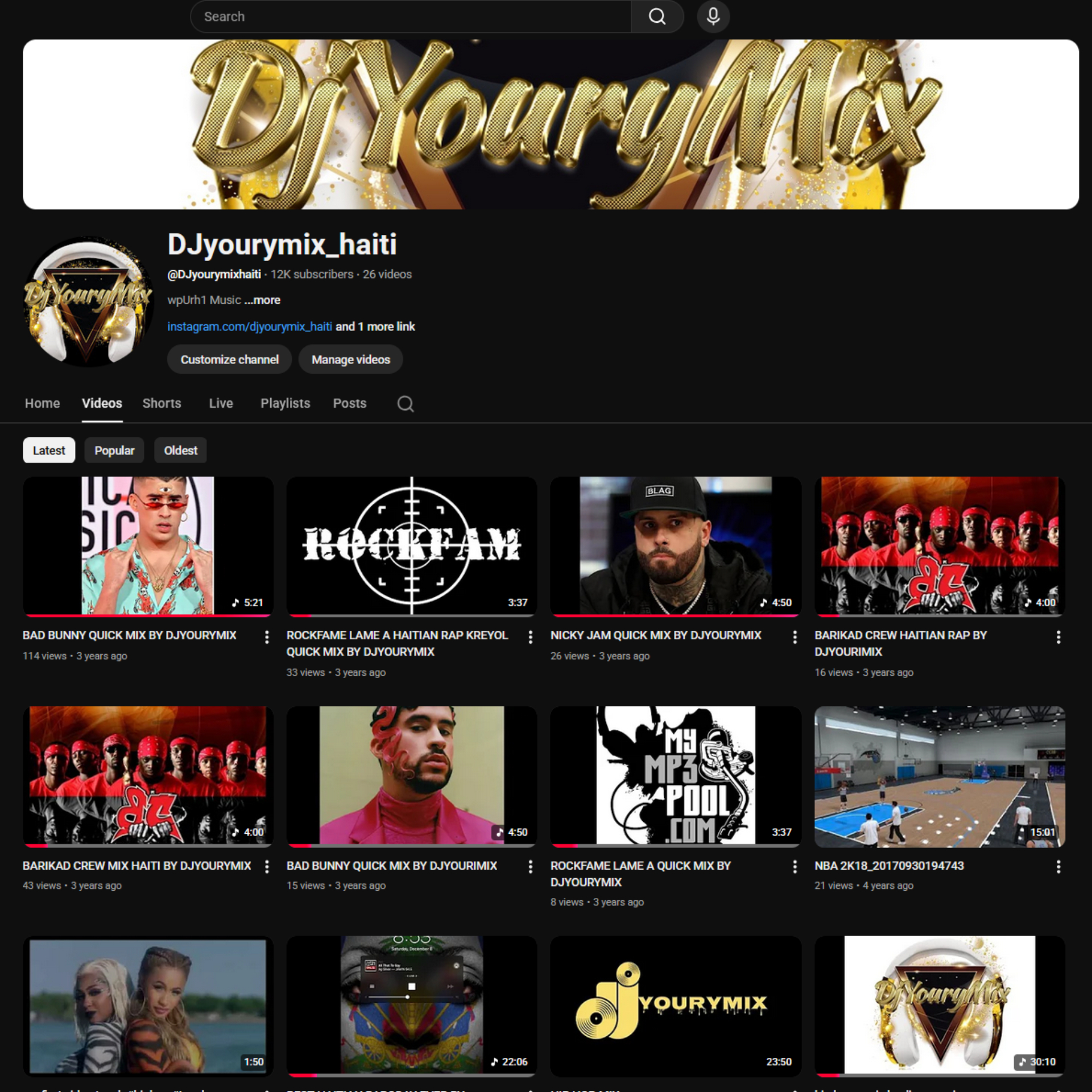 This YouTube channel focuses on music-related content, including DJ mixes, rap compilations, Caribbean & Haitian music edits, and viral short-form clips.